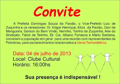 Convite - Reunião com representantes da Petrobras para tratar sobre Usina Termoelétrica